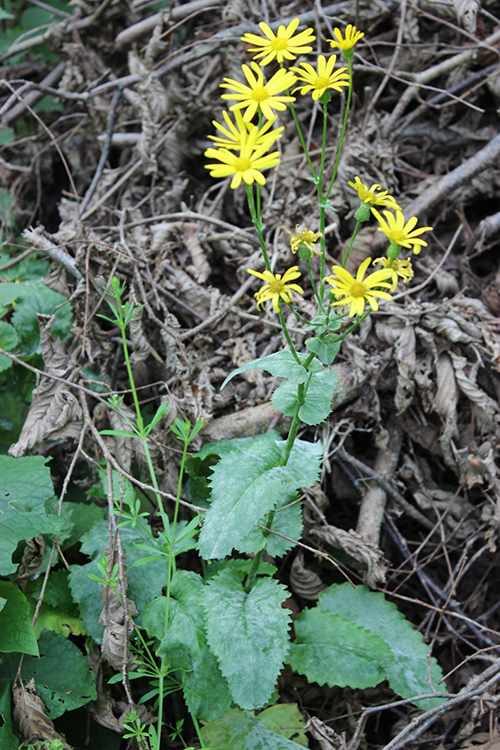 rakımlı lokaliteler tespit edilen örnekler 50 cm ile 85 cm arasında değişmektedir.Bitki çok yıllık olup dik ve tüysüz bir gövdeye sahiptir. Gövdenin alt kısmında yer alan (bazal) yapraklar saplıdır ve alt kısmında küçük bir çıkıntıya sahiptir, yaprak ayası 5cm-12cm genişliğinde, kalpsi ya da yumurtamsı şekilde olup kenarları dilimli ve belirgin şekilde dişlidir. Gövdenin üst kısmında yer alan genç yapraklar sapsız olup yaprak tabanı bitkinin gövdesini sarmaktadır. Çiçek kurulu 3-4 cm genişliğinde başçık (Kapitulum) şeklinde olup ışınsal simetrilidir. Taç yapraklar açık sarı renkte olup uç kısımların küçük girintilere sahiptir. Çanak yaprak yeşil renkte olup, ince, uzun ve 2-4 mm dir. Aken tipi meyveye sahiptir olgunlaşmamış akenler kısa ve tüylüdür, tohumun (aken)üst kısmındaki tüy demeti (pappus) beyaz renktedir.