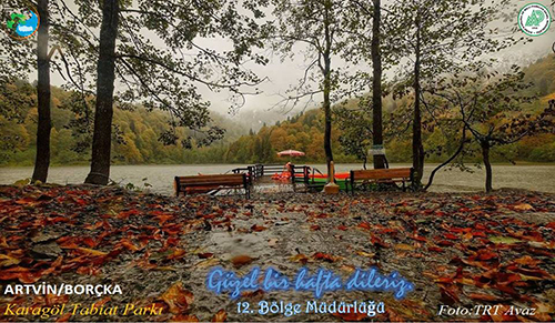 BORÇKA KARAGÖL TABİAT PARKI: “Borçka, hiç abartısız dünyanın en güzel göllerinden biri olan Karagöl’e ev sahipliği yapıyor.” Artvin kent merkezine 57 km, Borçka’ya 25 km uzaklıkta bulunan Borçka Karagöl Tabiat Parkı, Karadeniz’in eşsiz güzellikteki cennet bölgelerinden biri. 19. Yüzyılın başlarında yaşanan toprak kayması sonucu oluşan ve günümüzde Klaskur Yaylası (Aralık Yaylası) yakınlarında yer alan Borçka Karagöl, etrafı dağlarla çevrili bir doğa harikası tabiat parkının kalbinde konuma sahip. Borçka’da bulunan bu cennet Ağustos 2002 tarihinde Bakanlar Kurulu’nca “Tabiat Parkı” olarak ilan edilmiştir. 368 hektarlık bir alana, göl ve çevresi ise 5 hektar alana sahip olup Artvin ilinin Klaskur (Aralık) Köyü yakınlarında bulunmaktadır. Heyelan gölü özelliği taşıyan Karagöl 1900’lü yıllarda Klaskur adındaki yaylanın yakınında yer alan bir tepenin kaymasıyla Klaskur Deresi’nin önünü kapatması sonucu oluşmuştur . Bu yer 1550 metre rakıma sahiptir. Kayın ve Gürgen ağaçlarla kaplı göl kenarı endemik türlerle de zengin bir bitki örtüsüne sahiptir. Göl derinliği 25 metreyi bulmaktadır. Gölün çevresi ise 2450 metredir.
